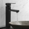 MEZCLADOR LAVAMANOS ALTO CUERPO PLÁSTICO MANIJA EN ZINC CARTUCHO CERAMICO 35MM COLOR NEGRO 31 CM